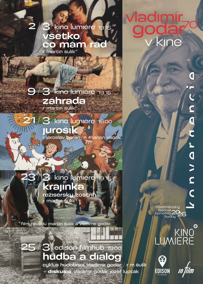 „Hudba dostáva diváka do vnútra postáv. Film stmeľuje, zintímňuje, vnáša doň emócie a spresňuje aj jeho žáner,“ povedal v jednom z rozhovorov režisér Martin Šulík. Hudba Vladimíra Godára pôsobí vo filmoch ako kľúčový, často podvedome vnímaný prvok, ktorý posilňuje výrazovú hĺbku príbehu, dotvára atmosféru a prehlbuje divácky zážitok. Jubileum jednej z najvýraznejších osobností slovenskej hudby si pripomenie festival Konvergencie koncertom aj filmovým programom. Vladimír Godár (1956) je autorom rozsiahleho diela zahŕňajúceho sólové, komorné, orchestrálne i vokálno-inštrumentálne skladby. Medzinárodné uznanie získal aj vďaka nahrávke Mater, vydanej vydavateľstvom ECM. Ako autor viacerých kľúčových diel dosiahol uznanie nielen na koncertných pódiách, ale aj v slovenskej kinematografii, do dejín ktorej sa zapísal svojou dlhoročnou spoluprácou s režisérom Martinom Šulíkom. Za hudbu k snímke Krajinka dostal prestížne ocenenie Georges Delerue Award. Štyrikrát bol nominovaný na Českého leva, ktorého si odniesol za hudbu k filmom Slnečný štát (r. Martin Šulík) a Návrat idiota (r. Saša Gedeon). Na Národnú filmovú cenu Slnko v sieti bol nominovaný päťkrát a získal ju za hudbu k filmom Martina Šulíka Slnečný štát (2005), Cigán (2011) a Tlmočník (2018). V roku 2021 Vladimírovi Godárovi udelila prezidentka Slovenskej republiky Zuzana Čaputová Rad Ľudovíta Štúra III. triedy. Prestížne štátne vyznamenanie získal za mimoriadne zásluhy o rozvoj Slovenskej republiky v oblasti kultúry a umenia, ako aj za významné šírenie dobrého mena Slovenska v zahraničí. Pri príležitosti jubilea skladateľa sa uskutoční v rámci festivalu Konvergencie 22. marca koncert vo Veľkom štúdiu Slovenského rozhlasu. Počas večera zaznie reprezentatívny výber z Godárovej tvorby v interpretácii popredných slovenských umelcov – speváka Petra Mikuláša, violončelistu Jozefa Luptáka, klaviristky Nory Skuty, huslistu Daniela Rumlera, violistu Martina Rumana, Hilaris Chamber Orchestra pod vedením Alana Vizváryho a Speváckeho zboru Technik so zbormajsterkou Petrou Torkošovou. „K hudbe Vladimíra Godára mám veľmi osobný vzťah. Vážim si ho ako skladateľa aj ako autora dôležitých textov,“ povedal umelecký riaditeľ a violončelista Jozef Lupták, ktorý premiéroval aj nahral mnohé zo skladateľových diel, pričom viaceré z nich mu boli dedikované. Ako sprievodný program podujatia uvedie festival Konvergencie v spolupráci s kinom Lumière prehliadku filmov s hudbou Vladimíra Godára. Osobitné miesto v jeho filmografii zaujíma dlhoročná spolupráca s režisérom Martinom Šulíkom. Vladmír Godár skomponoval hudbu ku všetkým jeho dielam, počnúc študentským filmom Staccato (1986). Prehliadku otvorí 2. marca film Martina Šulíka Všetko čo mám rád (1992). Poetický príbeh autenticky zachytáva atmosféru 90. rokov minulého storočia. Tridsiatnik Tomáš sa ocitá na životnej križovatke. Bez práce, uprostred konfliktov s bývalou manželkou a narušeného vzťahu so synom hľadá východisko zo svojej osobnej stagnácie. Stretnutie s mladou Angličankou a jej ponuka odísť do zahraničia mu otvára možnosť nového začiatku, no zároveň ho núti prehodnotiť svoje priority. Film uvedú Martin Šulík spoločne s Vladimírom Godárom. V pondelok 9. marca premietne kino Lumière ďalšiu krehkú komédiu Martina Šulíka Záhrada (1995). Film získal šesť Českých levov, Cenu slovenskej filmovej kritiky, Veľkú cenu na filmovom festivale v Cottbuse a bol ocenený aj na Medzinárodnom filmovom festivale v Rotterdame. Hlavným hrdinom je nepraktický učiteľ Jakub, ktorý po sérii osobných neúspechov odchádza z mesta do opusteného domu starého otca na vidieku. Film vyniká osobitou poetikou a jemným humorom. Súčasťou večera bude aj živé uvedenie skladby Emmeleia v interpretácii Jozefa Luptáka, Martina Krajča, Radky Krajčovej a Miloša Slobodníka a krátky úvod k filmu s Martinom Šulíkom a Vladimírom Godárom. Festival Konvergencie opäť myslí aj na deti a rodičov, v sobotu 21. marca popoludní pripravil rodinnú projekciu obľúbených animovaných rozprávok Jurošík režiséra Jaroslava Barana podľa námetu a scenára Mariána Vaneka. Súčasťou programu bude aj živé hudobné prekvapenie v podaní súboru Solamente naturali priamo v kinosále. Filmovú prehliadku v kine Lumière uzavrie v pondelok 23. marca ďalší z filmov Martina Šulíka Krajinka, ktorý prichádza po prvý raz na plátno v režisérskom zostrihu. Dielo, ktoré sa stretlo s pozitívnymi ohlasmi divákov i kritiky doma aj v zahraničí, je poetickou mozaikou desiatich príbehov odohrávajúcich sa na malom kúsku krajiny, kde sa v plynutí času miešajú osudy obyčajných ľudí. V malých historkách sa nenápadne odrážajú veľké historické udalosti. Projekciu osobne uvedú Vladimír Godár a Martin Šulík. Súčasťou sprievodného programu bude aj večer s názvom Hudba ako dialóg, ktorý sa uskutoční v stredu 25. marca v Edison Filmhube. Uvedenie dokumentu z cyklu Hudobníci, venovaného Vladimírovi Godárovi, doplní rozhovor so skladateľom a s violončelistom Jozefom Luptákom o ich dlhoročnej spolupráci a vzťahu k hudbe. Podujatie bude moderovať Oliver Rehák a jeho súčasťou bude i živé uvedenie skladby Passacaglia v interpretácii Jozefa Luptáka. „Umenie má rozširovať priestor ľudskej nezávislosti a slobody,“ povedal Vladimír Godár. A presne taká je aj jeho hudba. |